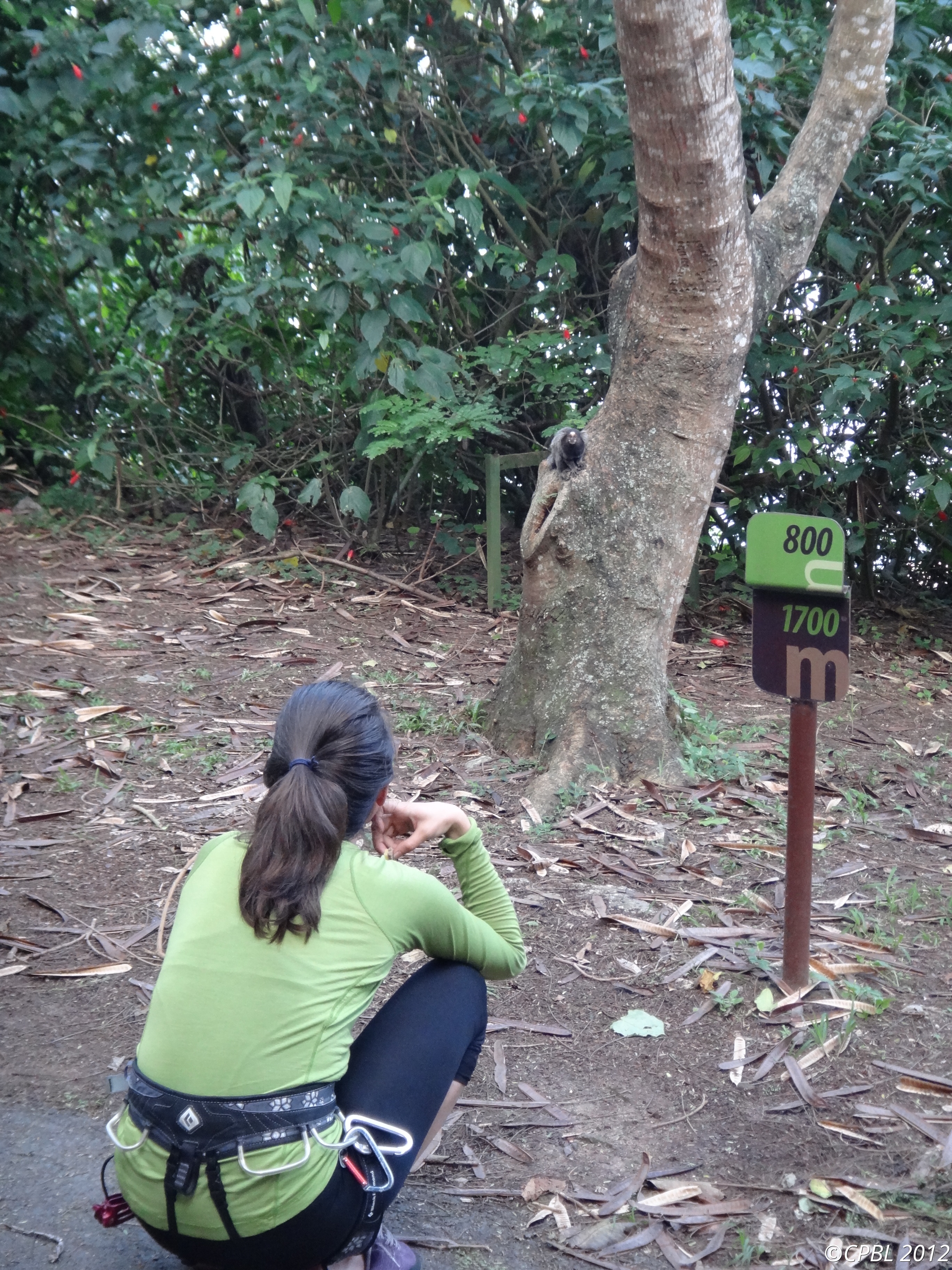 | | Our first trip was on a version of the Italian route on the Pão de Açúcar, which goes right up under the cable car. Some sagüis (tamarins) were waiting to greet Emmanuel and me at the base. |